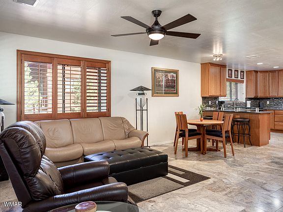 A Great home in the MOGOLLon Airpark with Hangar. This Beautiful 2 bedroom, 1.75 bath catches your eye from the moment you drive up. The stone and cedar siding and custom security screens welcome you to your Mountain Getaway. The open floor plan and spacious rooms provide plenty of room for friends and family in this 1440 square foot home. The kitchen has quartz counters and tile backsplash with a glass breakfast bar. The Hangar is equally impressive with over 3400 square feet. The Double Garage door and 50' hanger provide plenty of room for access. Inside is epoxy floor, plenty of room for storage, as well as a lift. In floor heating, water softener, metal roof, covered patio, fenced yard, and much more. HOA has has a clubhouse, tennis courts, picnic are and more.