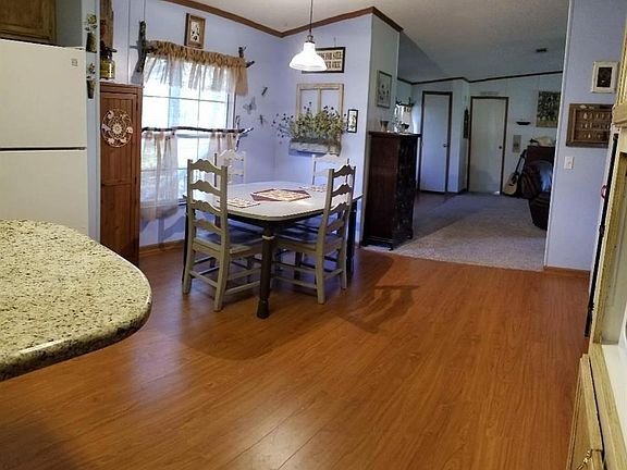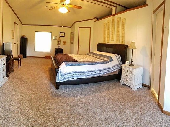 Welcome to your country home.Hugh open living area with vaulted ceilings and corner fireplace.Kitchen has open area with big walk in pantry,update granite counter-tops, kitchen sink, new paint, and laminate flooring and carpet through out the home.Large Breakfast bar with plenty of storage space below.Master retreat has his and hers separate bathrooms w/open vaulted ceiling.Extended covered patio-overlooking 5 unrestricted acres.Property features 30x40 metal workshop or barn w/6"concrete re-bar floors. Refrigerator stays with sale of property. Driveway access has side entry from Riley Rd.