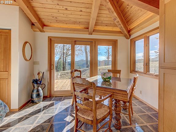 Simply gorgeous! Enjoy the peace and wonder throughout these 20 acres. Storybook treed entry leads to the amazing custom home. Open beams, fireplace & window wall to enjoy beautiful mountain & valley views and surrounding nature. Watch incredible sunrise/sunsets from the expansive deck. Upscale amenities throughout. Great separation of space with three bedroom suites plus art studio above garage. Separate 24x26 shop, RV parking. Fenced garden with nearby patio. Gated, timber. So much more!