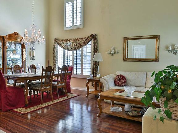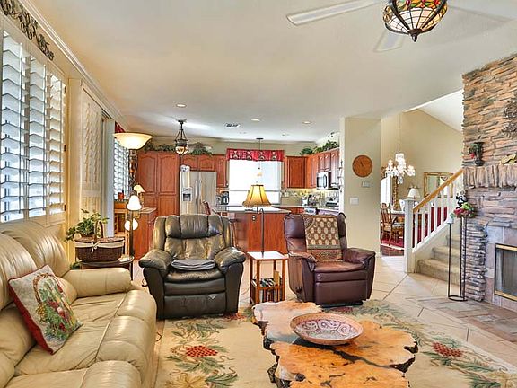 **MUST SEE VIDEO TOUR** Located high at the top of Horsethief Canyon Ranch, sits this well appointed cul-de-sac home. Enjoy stunning views of surrounding hills. This home features an open floor plan with room to roam. Offering 4 bedrooms + bonus/den (possible 5th bedroom), one bedroom and bonus room located downstairs. Designer kitchen with huge center island...Corian counters and backsplash, pullout drawers in pantry, designer cabinets, and high end stainless steel appliances accentuate this dream kitchen. Crown molding and upgraded baseboards throughout, custom plantation shutters, designer porcelain tile in high traffic areas, engineered laminate wood flooring in living and dining rooms, upgraded light fixtures and ceiling fans. Whole house fan upgrade. Backyard is an entertainers delight with a beautiful covered patio, built in gas fire pit , relaxing above ground spa, manicured landscape, and oversized lot with huge side yard with double gated access from the driveway. Great family community that has everything, including a K-8 school, soccer fields, basketball and tennis courts, sand volleyball, large clubhouse with two community pools, botanical garden and fitness center. Dog Park coming soon. Private Security Patrol included.