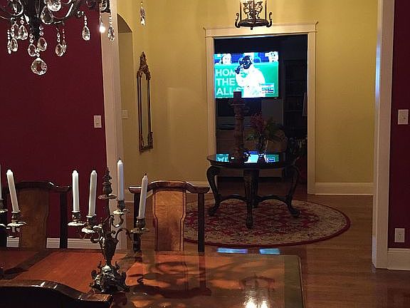 3 bedroom, 3 bath, single floor, open living area with large family room (18X22) with fireplace custom Louis XIV stone mantel, covered porch off family room (18X12) formal dining room, eat in kitchen and media room with HD projection and 90 inch electric screen in ceiling, surround sound throughout the home and patio, central vacuum system, Anderson windows and French doors.