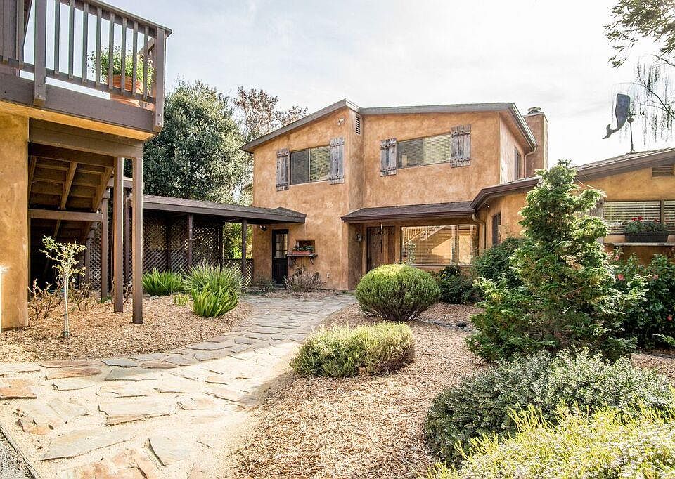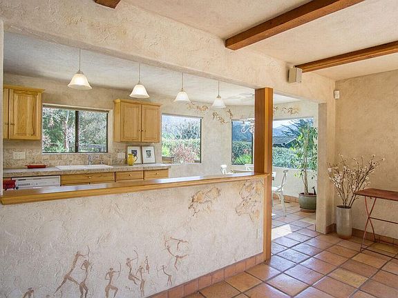 Sunny side of the valley and only minutes from Carmel! This contemporary house with hacienda flair is on over an acre of private, south facing, drought tolerant landscaped gardens in mid valley and has an expansive tile patio. The 3 bedroom house has an additional one bedroom guest house over the three car garage,( total of 4 bedrooms and 3 baths). Ideal setting for extended family or guests. This property has it all. Privacy, views, and location.