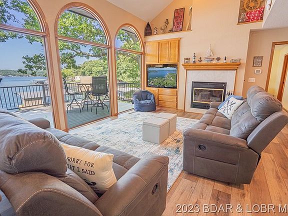 Looking for a FLAT lot in a cove with a main channel view, then check out this AMAZING property. The moment you drive up you will know your have found your perfect lake home. Plenty of parking and NO STEPS to the dock. This home is spacious and offers plenty of room for all your guests. Enjoy the massive views from your deck or hang out on the concrete dock. Located on the 3 Mile Marker of the Gravois Arm, this one checks all the boxes!!