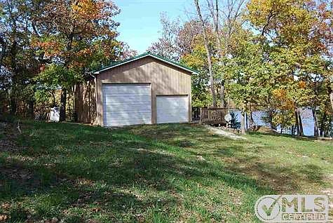 Beautiful waterfront property at 79 mile marker on Lake of the Ozarks. Includes a 1-well covered, permitted dock in deep water. This is a metal garage building w/full bath, small kitchen, FA heat, wood stove and window AC. Surveyed, very private! Excellent location to build a lake home or continue to use existing structure as a cabin!