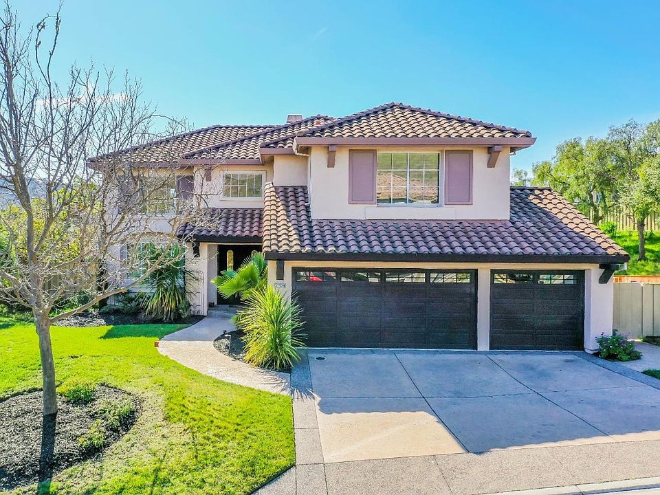 Wonderful views! This beautiful and well-maintained home boasts 4 spacious bedrooms and 2 baths upstairs. The master has a walk-in closet with organizers and a gas fireplace, large bath with jetted tub. An office - which could be a 5th bedroom - is downstairs with a full bath. Neutral colors throughout. Fully landscaped with automatic sprinklers. Fenced back and side yards. 3-car garage. Community pool. Mirror in living room that is attached to wall does not convey