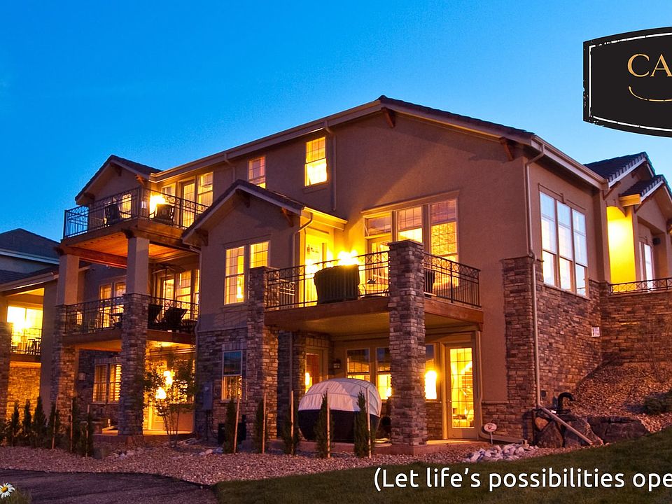 **Model lease back opportunity**. Fabulous home features a main floor master suite, spacious kitchen/nook & great room w/ 19' vaulted ceilings, wrought iron open rail staircase, stone ledge fireplace, upper level loft & guest suite, finished walkout basement w/ bedroom, rec room, wet bar, flex room & add'l patio. This magnificent home has top-of-the-line selections throughout! Adjacent to open space. Model photos shown.