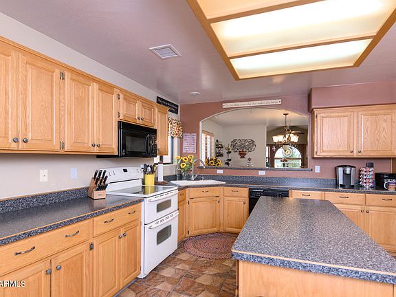 Spacious Home offers incredible views of Granite Mountain. Great Room features Tall Windows and Vaulted Ceiling providing abundant daylight, Arched Accents and Gas Fireplace. Substantial Kitchen with Oversized Island and Pass-Through to Formal Dining is perfect for entertaining. Roll-out Shelving in many cabinets, Sizable Pantry. All Appliances stay. Roomy Master Suite includes His and Hers Vanities, Jetted Tub, Separate Shower. Third Bedroom with Balcony & View is currently being used as an Oversized Office/Man Cave. Abundant Storage throughout. 2-Car Garage offers a ADA Compliant Chair Lift to take you and/or your groceries to Main Living Level!