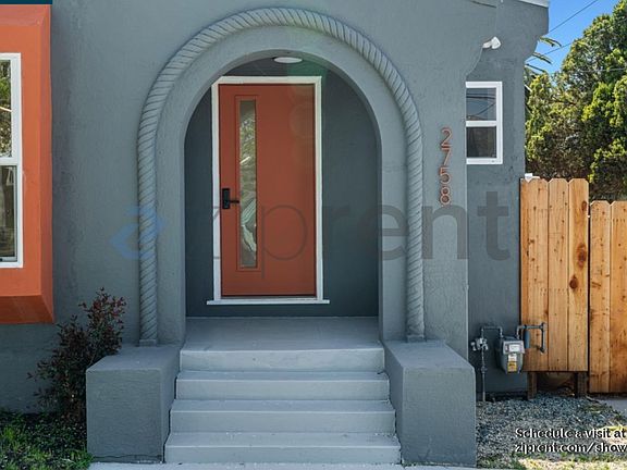This property is available. Please inquire on this site to schedule a showing. Welcome to 2758 Ritchie Street, a beautifully updated residence in the heart of Oakland, CA. This home boasts a striking exterior with modern gray tones accented by a vibrant orange door, inviting you into a bright and airy interior. The living area is spacious and filled with natural light, featuring sleek hardwood floors and a cozy fireplace perfect for relaxing evenings. The open-concept design flows seamlessly into the kitchen, which is equipped with stainless steel appliances, chic cabinetry, and ample counter space for all your culinary needs. The property offers a comfortable layout with well-appointed bedrooms and stylish bathrooms, including a primary suite with a modern en-suite bath. Sliding barn doors add a touch of contemporary elegance, while large windows offer views of the lush, private backyard. The outdoor space is ideal for entertaining or simply enjoying the California sunshine. Located in a vibrant neighborhood close to shops, dining, and parks, this home combines convenience with comfort, making it a perfect choice for anyone looking to settle in the Oakland area. Available: NOW Heating: ForcedAir Cooling: Central Appliances: Refrigerator, Range Oven, Dishwasher, Microwave Laundry: Hook-ups Parking: Off Street, 2 spaces Pets: Sorry, no pets allowed Security deposit: $2,950.00 Included Utilities: Landscaping Disclaimer: Ziprent is acting as the agent for the owner. Information Deemed Reliable but not Guaranteed. All information should be independently verified by renter. This property is listed by Ziprent on behalf of the property owner for tenant placement services only.