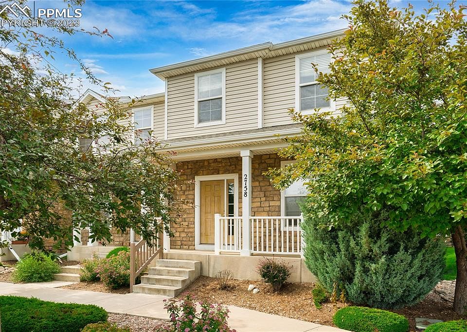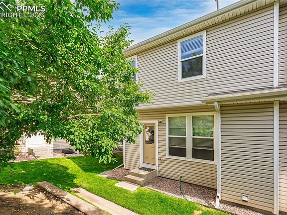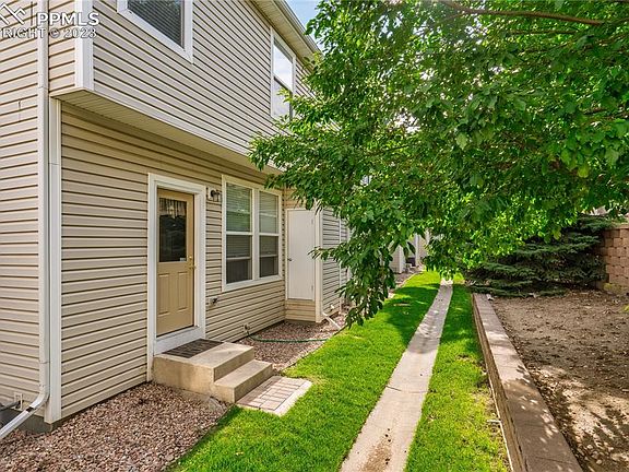 Fall in love with this 3/2.5 end unit town-home located adjacent to the park in The Bluffs at Spring Creek. This charming 2-story end unit townhome offers the perfect blend of comfort, convenience, and location. Privacy and low maintenance living at its best. New carpet, updated paint and LVP flooring. HVAC updated with new A/C last in June 2021. Vaulted ceilings in the primary bedroom, walk-in closet and an attached full bathroom. There is another full bathroom on the upper level for the two additional bedrooms to share. Relax on your front porch. Take in the amazing sunsets over the park and mountain views. Centrally located - Easy Access to I-25, Ft Carson, Downtown Colorado Springs and so much more! Shopping, restaurants entertainment just minutes away! Whether you're seeking a private sanctuary or a place for the whole family, this home has it all. Don't miss the opportunity to call this delightful townhome your own. This home fell out of contract due to financing issues. Agent and buyer to verify accuracy of all HOA information.