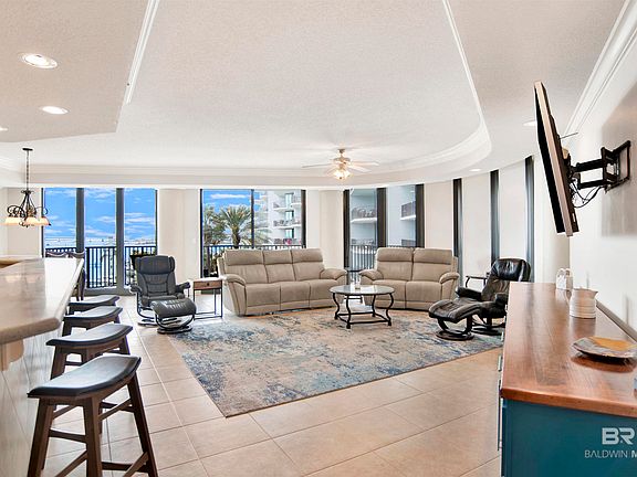 Experience the ultimate in coastal living with this stunning 3-bedroom, 3.5-bathroom unit at Lighthouse on the Bay in Orange Beach, AL. Perfectly situated on the bay, this spacious condo offers breathtaking water views, top-tier amenities, and a prime location for boating and beachside relaxation. Inside, you'll find an open-concept living space with floor-to-ceiling windows, filling the unit with natural light and showcasing the picturesque waterfront. The kitchen boasts tons of cabinetry, expansive island, wet bar with ice maker and mini-fridge, making it perfect for entertaining. Each bedroom features ensuite bathrooms, ensuring privacy and comfort, while the additional half-bath is perfect for guests. Step outside onto your balcony, where you can unwind and take in the stunning views of the bay, marina, and resort-style pool. Lighthouse on the Bay offers first-class amenities, including an amazing lazy river, indoor and outdoor pools, hot tubs, fitness center, tennis courts, and a private marina with boat slips that are available to rent. Located just minutes from white-sand beaches, world-class dining, shopping, and entertainment, this condo is an excellent choice for a primary residence, vacation home, or investment property. Added features include $14,000 custom shades in the living room and bedrooms, custom cabinetry in the laundry room, 2 HVAC units, tiled island to protect from scuff marks and LARGE corner owners closet. This one owner unit has never been rented and easy to show! Rental Projections $50k-$60k. Buyer to verify all information during due diligence.