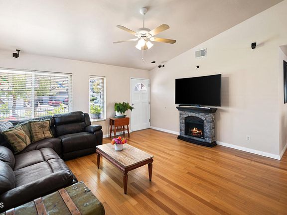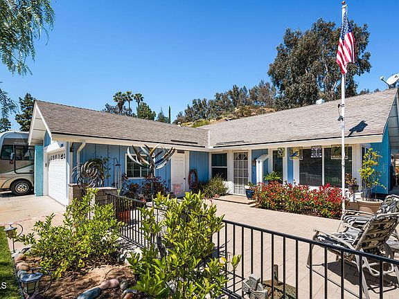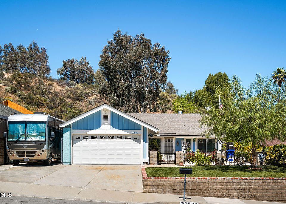 Welcome to this charming 3-bedroom, 2-bathroom home in the heart of Valencia! Freshly painted and thoughtfully maintained, this property offers both comfort and functionality. The main living area features soaring vaulted ceilings, creating a bright and open atmosphere. Step into the gated front courtyard patio perfect for morning coffee or evening gatherings and enjoy the spacious covered back patio ideal for entertaining. The garage includes a dedicated workspace, built-in storage, and an exterior side entrance for added convenience. Additional highlights include spacious RV parking with a 50-amp plug, a brand-new roof on the patio cover, and an above-ground spa for ultimate relaxation. The backyard is a true retreat with mature fruit trees, grape vines, and a fully fenced grassy area. Inside, you'll also find a welcoming dining area and a seamless layout ready for your personal touch. A must-see property with fantastic indoor and outdoor features!