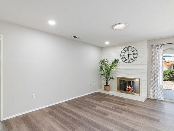 Welcome home to the 55+ neighborhood of Sun City. This 2 bedroom, 2 bath home with a den/office features 1,393 sqft. of living space and has been completely updated/remodeled ready for move in. This home features new custom paint, new flooring, updated bathrooms, updated kitchen, new ceiling fans, covered patio, 2-car garage and easy-care drought tolerant landscaping. The home has a large central living area with a fireplace for those cool evenings. Custom plank flooring throughout with new carpet in the bedrooms. Easy access to the backyard through sliding glass doors from the living room. Kitchen features custom white cabinets, beautiful countertops, stainless steel appliances, shelves, brushed nickel hardware, and large storage cabinetry with overhead storage. Bathrooms all have been updated with new cabinetry and counters, hardware and clean, clean, clean!! So much open space in the back yard and a comfortable patio with patio cover and fan. Call today for your private showing.. This listing will not last!