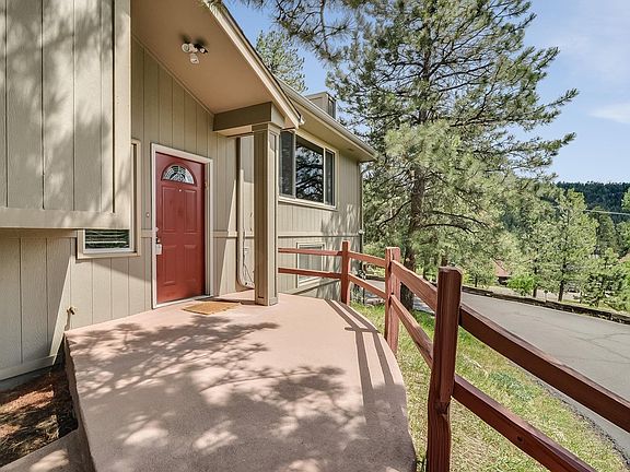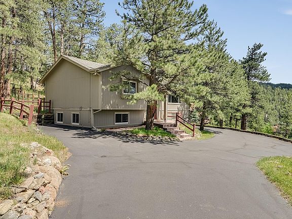 Beautifully remodeled home in desirable Hiwan Village. Move in ready with oak hardwood floors on the main level, tile floors in lower level family room, newer solid oak doors throughout. Open floor plan, abundant double pane windows and vaulted ceilings on the main allow for natural light and views of the rolling foothills. Small touches but ones that you will appreciate are the added lights in the closets, steam shower in lower level, partially fenced backyard, kitchen appliances that have been serviced yearly, for extra storage, two 12x8 Tuff Sheds and Central Air which is rarely found in a mountain home. Paved drive with additional off street parking for toys or recreational vehicle. Walking distance to Lariat Lodge and Center Stage as well as minutes from Downtown Evergreen. Must see to appreciate the work that has been put into this home.