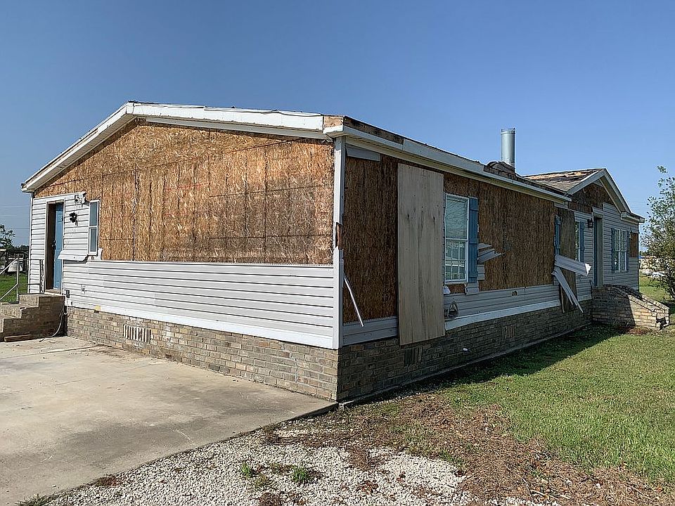 Hurricane Laura damaged 3 bed room, 2 bath room, mobile home located on approximately 3/4 acre in South Lake Charles. Home and is located on the end of a cul-de-sac in a quiet neighborhood. Home is located in Flood Zone X. This over 1,700 square foot home has a spacious living area with stone fireplace, that is wide open to the dining area with additional built-in cabinetry and the kitchen has a large walk-in pantry. The 3 bedrooms are spacious with large walk-in closets in each room. The Master bath has a separate tub and shower with double lavatories. The hall bath has shower/tub combo. There home has a utility room. This 1999 home is set on concrete runners therefore has solid construction with brick steps and brick skirting around entire home. Please Text or Call 337-513-6131 with any questions