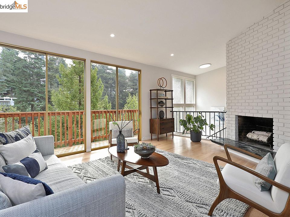 Escape the hustle and bustle of urban life in this private Mid-Century where you can wake to the soothing sounds of birds and the sweet smell of spring. Located in the Piedmont Pines neighborhood, this 4 bedroom home is only minutes to the Montclair Village with its shopping and dining as well as the hiking trails at Redwood Regional Park. Nestled on a serene and private cul-de-sac, this chic and spacious residence features new wide-plank light wood floors, contemporary finishes and loads of natural light from the dramatic windows that bring the outside in. From the front redwood patio, enter the impressive two-story foyer with soaring glass panels that bathe the space in natural light. Relax in the living room with its stand-alone brick fireplace, vaulted ceiling and double sliding doors to the rear terrace. Grab a cocktail in the adjoining dining room then head to the chef’s kitchen with double ovens, new quartz countertops, Bosch dishwasher and four-burner gas cooktop. The breakfast nook provides easy indoor/outdoor flow with doors to the front patio, perfect for your morning coffee, outdoor grilling and dining under the stars. Two bedrooms are located on the main floor including the primary suite. Downstairs are 2 additional bedrooms, an updated bath and spacious family room.
