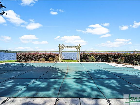 Incredible opportunity to experience waterfront living on the Ogeechee River with a pool and dock. Enjoy endless views with stunning sunrises and sunsets. The main level offers a vaulted living room, formal dining room, sunken sitting room with wood burning fireplace, large vaulted great room, eat-in kitchen, and a bedroom and full bath. Upstairs offers two additional bedrooms and the owner’s suite with unparalleled views. The private backyard, with pool, dock, outdoor shower, and manicured lawn, is the perfect place to kick back and enjoy the best of life on the river. The house has ample storage and an oversized two-car garage with a workbench. 2 newer HVAC units have been installed in recent years. Ready for you to put your finishing touches on this wonderful deepwater home. Walking distance to the Ft. McAllister Marina, Restaurant and State Park, minutes from downtown Richmond Hill, 30 minutes from Historic Savannah, and close to I-95. No HOA and no lender required flood insurance.