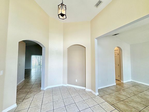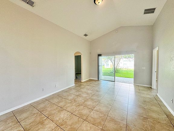 This great spacious home offers the perfect blend of comfort and convenience. The open-concept layout features a split bedroom plan, providing privacy and functionality, and ceramic tile flooring that extends throughout the entire homeno carpets here! The large kitchen, boasts ample cabinet and counter space, a breakfast bar, and room for an eat-in area. Kitchen over looks the great room with vaulted ceilings, creating an airy and inviting atmosphere. The kitchen conveniently opens to the formal dining room, making hosting a breeze. There is access to the covered 12x8 rear patio from the great room. The primary suite is a complete with a generous walk-in closet, a private en-suite including dual sinks, a garden tub, and walk-in tile shower. The two bedrooms are of ample size share a guest bath located between them, featuring a tub/shower combo. Additional highlights include an inside utility room for added convenience and a paver driveway that enhances the home's curb appeal. Just a short drive from downtown Winter Haven, offering easy access to shopping, restaurants, and more. It's also an ideal spot for quick access to HWY 27, making trips to Orlando or Tampa.