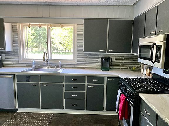 Welcome...main floor living! This 3 bedroom 1 bath ranch has all the comforts you're looking for in this adorable abode! The large kitchen is newly updated with quartz countertops and tile backsplash. There's lots of cabinet space plus all stainless steel appliances. The ample dining area and living room are large and nice for entertaining with friends and family. The master bedroom rocks a 60 SF closet and sliders out to the patio to enjoy the morning sunrises or evening sunsets. The bathroom is also updated with glass shower doors, zero-step entry and tiled walls. The 2 additional bedrooms are roomy and have nice sized closets. The laundry room is very large for all your laundry needs and the mudroom is a nice addition for coats and boots.