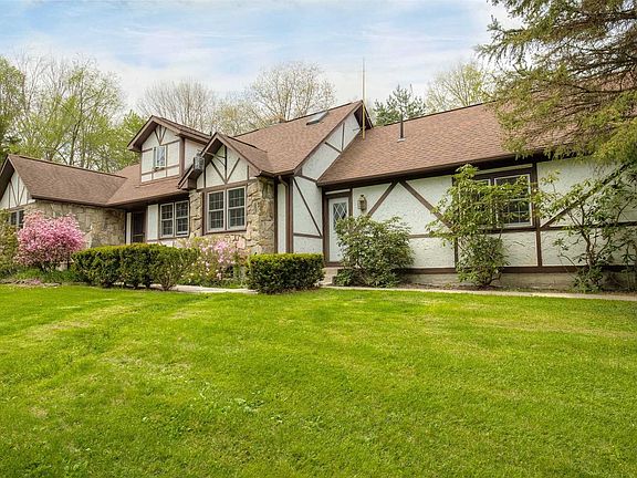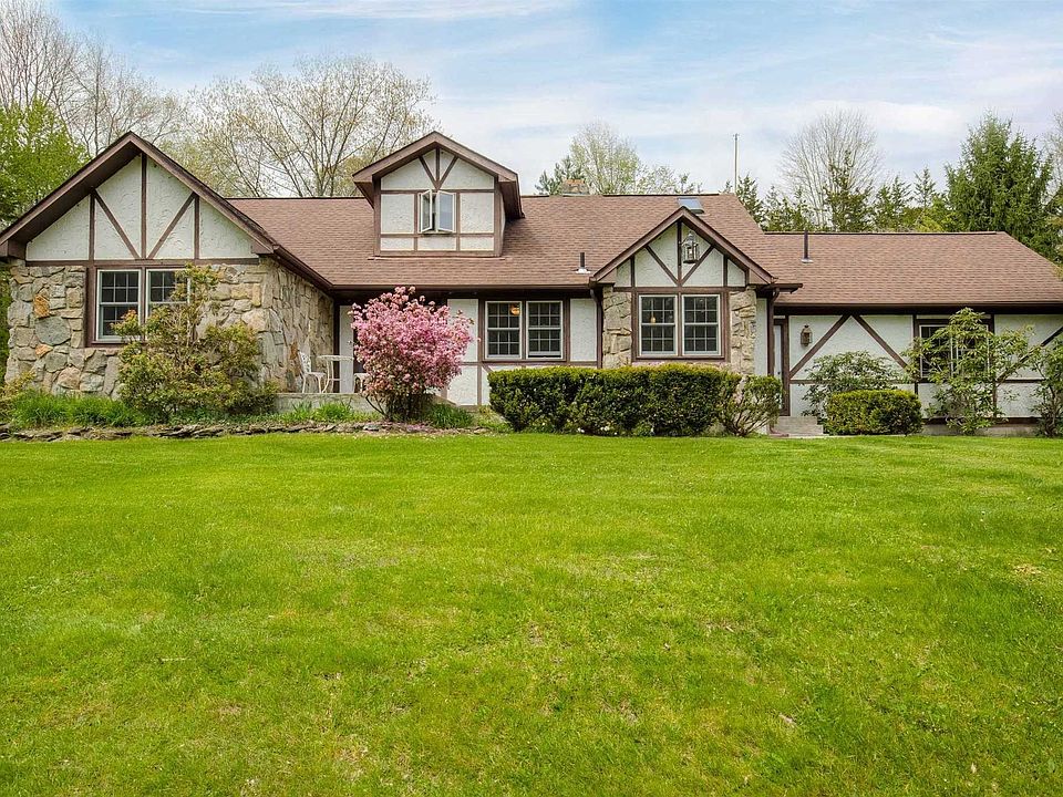 Entertainer's Delight! One of a kind gem with lake rights to Upton Lake. Beautifully maintained, meticulously detailed Tudor home in Clinton Corners on private 10+ acres. Freshly painted neutral tones, beautiful hardwood flooring throughout main level and spacious open layout. Enormous updated gourmet, eat in kitchen with plenty of cabinets, new granite counters, huge center island, tiled backsplash and stainless appliances. Awesome great room with high cathedral ceiling, loads of windows and french door leading to patio area. Formal dining room with stone fireplace and double sliding glass doors also leading to patio. Private, 1st floor master bedroom suite with newly refinished hardwood floors, cathedral ceiling and brand new remodel gorgeous bathroom. Two additional bedrooms on main level with wood floors and beautiful, newly renovated main bath. Second floor has loft area, 2 more large bedrooms and full hall bath. Easy access to attic storage on 2nd story also. Extra deep lot, over 10 treed acres, with outdoor patio perfect for entertaining and relaxing. Just a short walk to beach area on Upton Lake, 10 minutes to Millbrook and minutes to TSP. Property is subdividable also - 5 acre zoning.