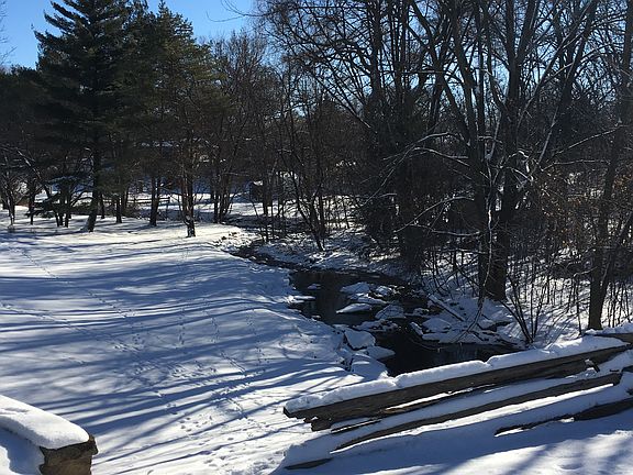 **Must see it to appreciate the size.** Much larger inside than it appears from the outside. Pristine, all-brick, walk-out ranch on a beautiful 1/2 acre ravine lot with creek views. Park-like yard with mature trees, concrete patio and many landscape beds with professionally installed curbing. Lower level walk-out. Four large carpeted bedrooms with large closets, one with a walk-in closet. Bathroom with double sinks. Corian counter tops in main bath and kitchen. 3' x'6 walk-in pantry in kitchen with a second 3' x 6' back hall closet and a 3' x 6' cedar closet. First floor laundry. Main floor was remodeled in 2014 with new hand-scraped engineered wood flooring in hallways and kitchen/dinette, ceramic tile in laundry and bath, ceramic tile in bathtub area, kitchen cabinets resurfaced and new counter tops installed. All new 6-panel oak doors installed in all rooms and on all closets, new hardware and oak trim/baseboards. Pella windows throughout. Kitchen has a large island with plenty of storage and a large dinette area with bow window overlooking back yard. Newer stainless appliances. First floor is open to the finished lower level which has a very large family room area, office area, bedroom, full bath & wet bar area. Full masonry fireplace that was recently converted to a gas fireplace. Also a large walk-in cellar. Home has central air and hot water heat. All window treatments and blinds are included.