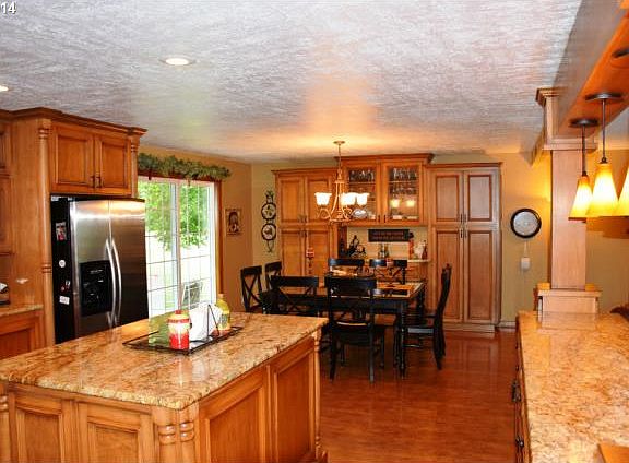 Close-in nicely updated home on 2+ acres! Spacious throughout. Open kitchen w/slab granite, island, stainless appliances, & laminate flooring. Dining w/built-in hutch. New interior paint, vaulted ceilingss, family room w/slider to backyard, 2 fireplaces w/pellet inserts, loft area, water filtration system, full fencing w/no climb fence, 35' X 22' shop w/power & heat, fruit & nut trees, raised garden beds, new roof soon, and just minutes from town!