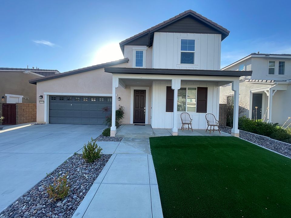 Situated in Menifee's Heritage Lake neighborhood, 27599 Gruber Drive is a modern single-family home built in 2020. Offering 4 bedrooms plus a loft and 3 bathrooms, the home spans 2,208 square feet on a 4,356-square-foot lot. With a thoughtfully designed interior and well-maintained exterior, this property provides a comfortable and stylish living space in Menifee. Move in date is 06/01/2025. Key Features: Equipped with central heating and cooling, along with an attached garage. A durable tile roof enhances the home's contemporary design. Interior Highlights: Kitchen: Features a center island and a dining area, perfect for entertaining. Living & Dining: Includes formal living and dining rooms, plus a family room. Master Suite: Located upstairs, offering a spacious master bath with dual vanities and a walk-in closet. Nearby Amenities: Mesa View Elementary School Approximately 0.6 miles away. Ethan A. Chase Middle School Approximately 0.5 miles away. Residents enjoy access to community amenities, including boating, a clubhouse, a pool, a splash park, and walking trails.