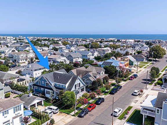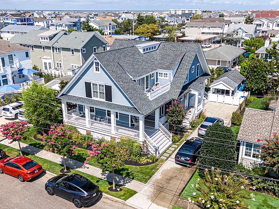 Expansive contemporary cape styled home with a sensational open floor plan designed for entertaining. The home sits on a large 65’ X 110’ lot in a wonderful residential neighborhood that is convenient to the beach and town. The inviting foyer opens to a very large great room featuring a living area with fireplace, updated kitchen with stone tops, stainless steel appliances and a wonderful center island all of which flow to a fabulous screened in porch. The porch opens to a very unique elevated deck with infinity edge pool which creates a nice waterfall with a calming sound. Adjacent to the elevated deck and pool is a detached garage for storage and a sensational cabana, great for getting out of the sun, grabbing a drink and watching a ball game on the tv. Back inside the home is an open but private fabulous dining area with custom built ins for storage. Adjacent to the dining area is a large family room spanning the width of the home that is filled with natural sunlight. The entire first floor is designed for entertainment and has beautiful light oak, wide plank, engineered floors and an extensive trim package. The front covered porch is spacious, cozy and neighborly. The first floor has a powder room. The second floor has five generous bedrooms; four of which are junior suites with en-suite bath and a beautiful primary bedroom with large en-suite bath, walk-in closet and a private sun deck. The Owners just installed beautiful, wide plank oak floors throughout the second floor to match the first floor. Brand new, beautiful stone tops were just installed in all bathrooms. The extra long driveway allows plenty of off street parking, and the professional landscaping is a show stopper. Home is sold tastefully furnished.
