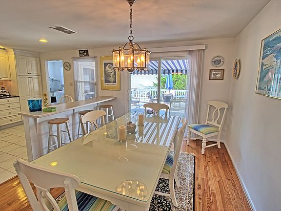This meticulously maintained, comfortable and charming ranch style home has 3 bedrooms and 2.5 baths. The home was extensively renovated in 2005, and is in move in condition. The large living room centers around a fireplace. The open floor plan is great for gatherings and entertainment. The rear, southern exposed expansive deck has a new awning that allows for both ample shade and plenty of deck space for sunbathing. The deck; and all exterior landings, are maintenance free Trex and the rails are vinyl. This virtually maintenance free home has vinyl windows, resin exterior doors and a vinyl shake exterior. The design allows a large master bedroom with private bath, two additional bedrooms, hall bath and powder room. There is a separate laundry room. The floors throughout are beautiful, oak hardwood. The home comes with fire and security alarm systems; and has an attached spacious shed and outdoor shower. The home is sold furnished less a few exclusions and wall hangings. The surrounding area is a quiet residential setting. The rear yard allows ample room for a pool.