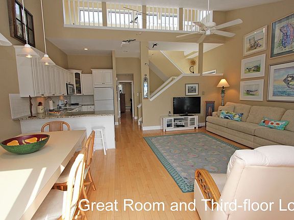This spotless and bright 5 bedroom, 2.5 bath townhouse is just one block to a quiet south Avalon beach. The second-floor greatroom has maple flooring and features a cathedral ceiling with windows at the top that fill the living areas with light. The well-equipped kitchen is only four years old and has granite tops and a breakfast bar. The home is handicap accessible with a ramp that accesses the heavy duty elevator on the rear deck and a master bathroom that has been modified for easy access. A third-floor loft area tops this distinctively charming unit. There is also an expansive side yard that will park at least six cars! Come see this winner in a premier neighborhood and you will not want to leave!