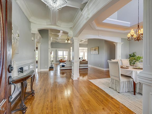 This home offers a spacious open floor plan, beautiful hardwood floors, and stunning views from nearly every room. The large primary bedroom is a true retreat, complete with a luxurious en suite bath featuring a jetted garden tub, a high-end walk-in rain shower, and illuminated mirrors for a spa-like experience. Four additional generously sized bedrooms provide ample space for family, guests, or a home office. The primary suite, as well as two additional bedrooms and a fulll bath and laundry are located on the main level.