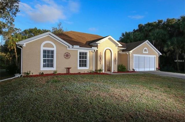 Price Reduced! Huge Home! Very attractively priced under $100 per sq.ft! Welcome Atlanta Braves Spring Training Complex for 2019 in North Port! Perfect seasonal home or first ownership for a new family. This beautiful 3 bedroom 2 bathroom plus cozy den home features an amazing floor plan and an extremely well thought out design situated on a very quiet street. The home is situated on almost a quarter acre lot surrounded by mature oaks for optimal shade, privacy and relaxation. Enjoy cookouts and bonfires during cool evenings on a quality pavered slab with family and friends. The home has a perfect sized screened in patio for morning coffee or an afternoon book. The home comes newly equipped in May 2015 with a powerful 3.5 ton Rheem AC unit. Upon entrance, the interior is warm and welcoming, open and inviting and comfortable for the whole family featuring vaulted ceilings and large sliding glass windows for just the right amount of light exposure. The kitchen is perfectly laid out with an island for extra counter tops for cooking while creating space for a breakfast nook and leaving room for an eat-in dining area. The utility room is perfect for additional storage that could also be used for a walk in pantry. The master bedroom suite is split on the south side of the home and includes over 250 sq.ft of space making a comfortable arrangement for the owners. On the north side, the 2nd, 3rd bedroom, den and 2nd bathroom is a private wing for the family or guests. Welcome home with a 1 year home warranty too.