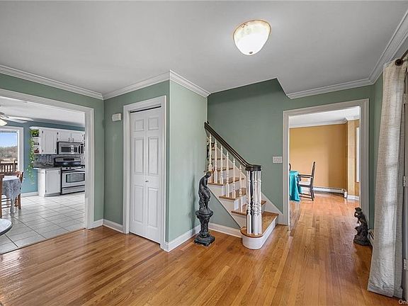 Minutes from bus station & I-17 & 10 min. to the train, this home is a commuter s dream! Located in the award-winning Warwick school district, this 4-bedroom 3-bath colonial w/ attached 2 car garage is conveniently close to shopping, dining and entertainment but boasts a country feel. The main level offers 2 oversized family rooms, the first has French doors opening to a deck that spans the length of the home; the other was utilized as a NYS Licensed daycare business. In addition to its updated kitchen w/island, dining room, full bath, and laundry room it has a dedicated office! Upstairs you will find the master bedroom with 2 walk-in closets, vaulted ceilings and full bath along with 3 other generously sized bedrooms and full bath. Breathtaking property that showcases pastoral views, panoramic sunsets, stream and pond all encompassed in this sprawling 5.4 acres. Has been well maintained, Exterior recently professionally painted, furnace replaced in 2014 and a New Roof in 2015.