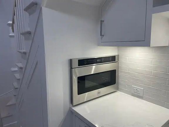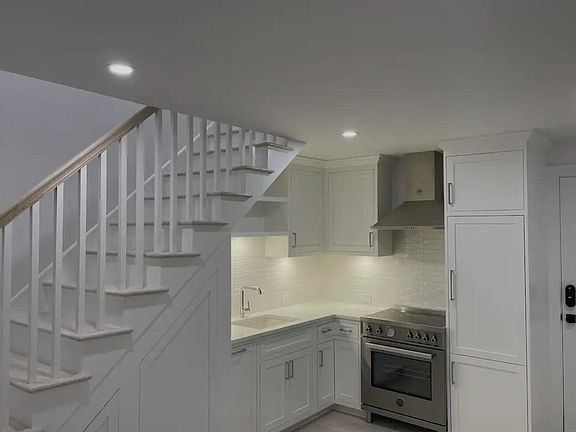 Renovated, fully furnished 1-bedroom unit with a full bath, office, and eat-in kitchen available for rent. Enjoy the luxury of a custom-designed kitchen featuring a Bertazoni range and exquisite custom cabinetry. The bathroom boasts elegant Carrera marble and top-of-the-line Kohler fixtures for a truly luxurious experience. This unique unit is designed with a split-level layout, offering a kitchen/dining area on the first floor and a spacious bedroom, bathroom, and office/laundry room on the upper level. With an abundance of natural light, the contemporary design creates an inviting and airy atmosphere. Conveniently located within walking distance to the metro-North train station and the upscale shopping of Greenwich Avenue, this unit seamlessly blends modern comfort with prime accessibility. Don't miss the opportunity to make this exquisite space your new home.