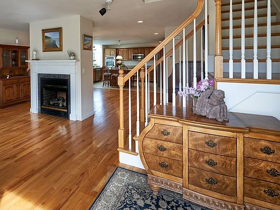 Charming single-family Colonial with open floor plan. Step into this beautiful Colonial featuring 2,000sq.ft. of well designed living space. The living room and dining room share a cozy two-sided fireplace. Hardwoods run throughout adding elegance. The modern kitchen features an extensive garden window, tile floor, built-in display case, a wealth of cabinetry, stainless steel appliances, and an island with seating for 4-6. For convenience a laundry room and a 1/2 bath are located on the first floor. The second floor boasts 3 generous bedrooms with hardwood floors and two full baths. The primary bedroom is large, bright with 4 windows having window seats with storage and a sizable walk-in closet. This suite includes a private bath with a jetted tub, shower, and two separate vanities. The secondary bedrooms are well sized and share a full bath with shower. This classic home offers vinyl fencing, a shed and 4 off-street parking spaces. This home blends comfort, style, and location.