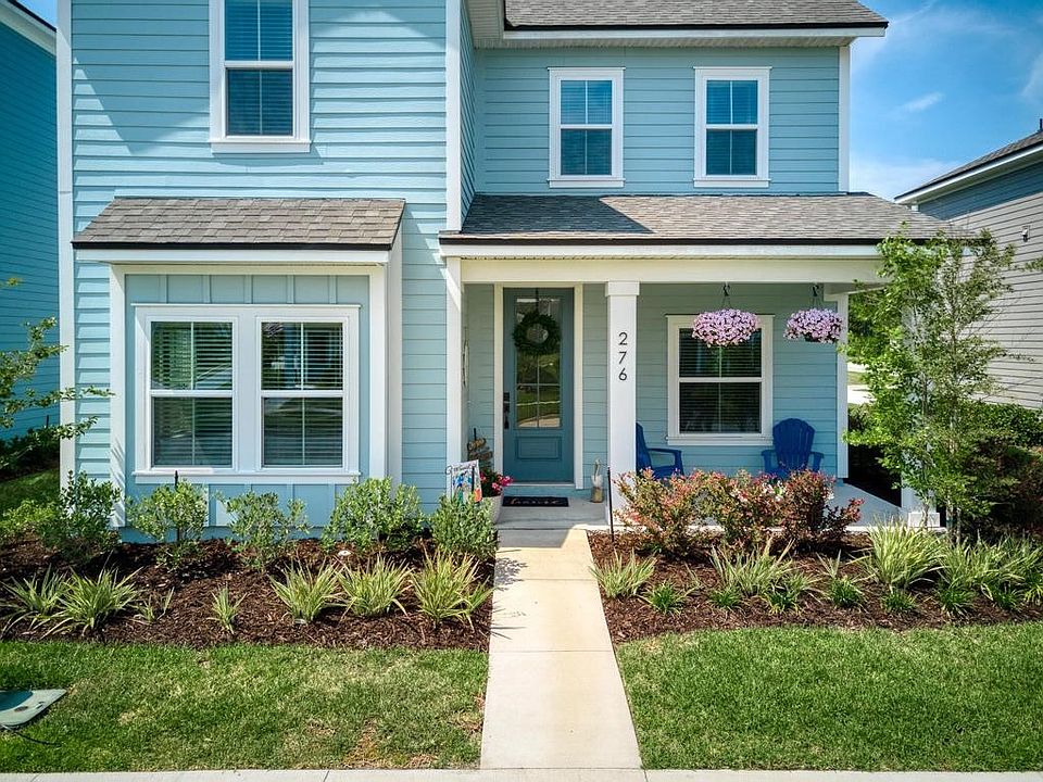 WHY WAIT for new construction? This immaculate model-like beauty offers 60K IN STUNNING UPGRADES and is absolute perfection. From the moment you step inside, take notice of the soaring high ceilings, wood look tile flooring throughout, tons of windows for natural light at every turn, light and bright paint colors and upgraded fixtures throughout. Downstairs offers a private guest bedroom and full bathroom suite with walk in shower and upgraded sink vanity tucked away in the back for privacy. Your large open concept floor plan offers a spacious family room, overlooked by your gourmet kitchen and open dining space. Kitchen complete with incredible quartz counters, SS appliances, walk-in pantry, pendant lighting, incredible tiled backsplash, custom white cabinets, oversized island with bar seating and so much more. Trailmark Living is highly sought after for their resort style amenities and incredible location, offering zero-entry community pool, exercise room, kayak launch & playground.