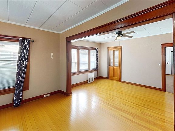 Owner-occupant or investor opportunity! ~ Multi-family home with two spacious units—up and down. ~ First Unit features: 3 beds, 1 bath, hardwood floors throughout living room and bedrooms, vinyl kitchen flooring with hardwood underneath, enclosed front porch with mudroom. Second Unit features: 3 beds, 1 bath, hardwood floors in living & dining areas plus all bedrooms, granite countertop sink, laundry hookup. ~ First unit has basement laundry hookup for convenience. ~ Forced air heating with natural gas in both units; solar system transferable to new owner. ~ Detached 2-car garage plus 5 driveway spots. ~ Ideal for long-term rental income or multi-family living! ~ This two-story home offers a blend of classic architecture and modern potential. ~ This property is an opportunity to own a substantial home with space and a convenient location.