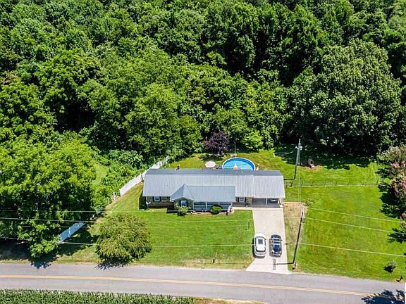 Welcome-Home! This spacious 3 bedroom, 2.5 bath brick home on approximately 2 acres features updated kitchen and bathrooms, living room and family room, full basement with den and workshop, metal roof, thermal windows, fenced yard with above ground pool and deck. You won't want to miss this!