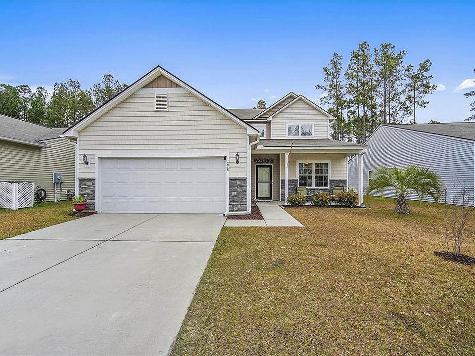Move in ready home in a great location and amazing neighborhood. This home has a front porch, Beautiful open floor plan, eat-in-kitchen; island with sink and dishwasher, flex/office room downstairs with speaker surround sound all throughout the downstairs and the back patio. Awesome when having a gathering/cookout. Home has all the upgrades you could ask for and backed up to a pond view along the walking trails. You have the option to build a 4 foot fence or 6 foot fence as well. This beautiful home is nestled in the popular community of Cane Bay! Within minutes to Elementary, Middle, High schools, grocery, restaurants, and YMCA. This neighborhood features a friendly atmosphere, play parks, walking/jogging along with bike riding trails. You don't want to miss this ON