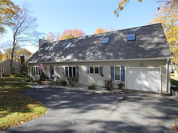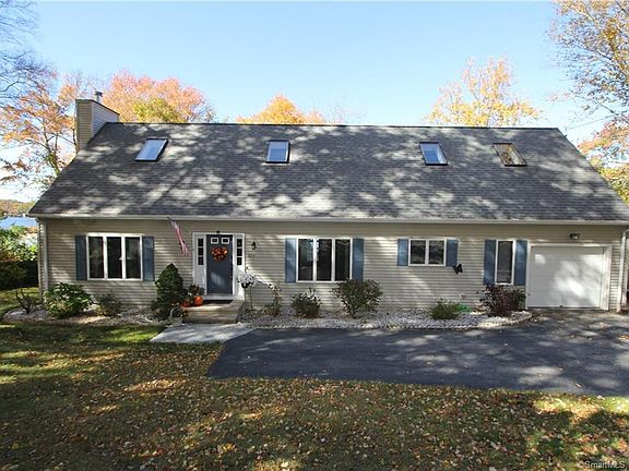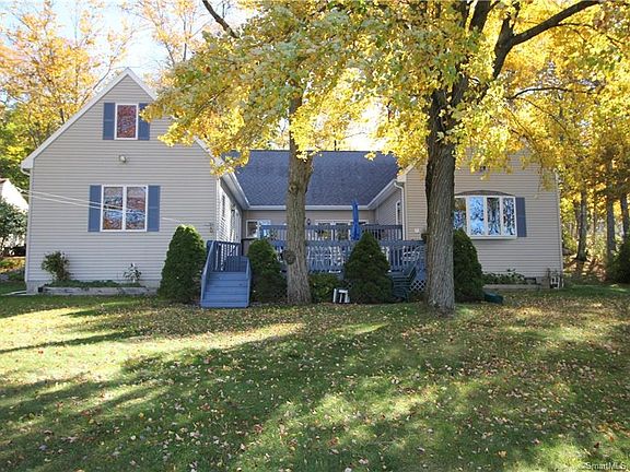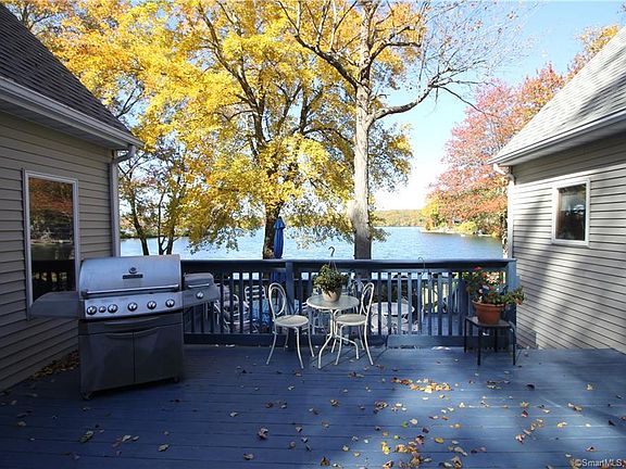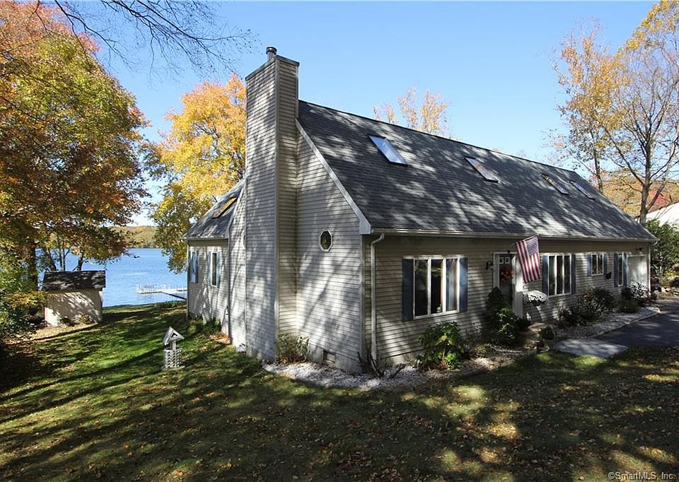 Remarkable sunsets and sparkling water views - this is lake front living at it's grandest! 120 feet of pristine shoreline! The heart of this custom built home is the Great Room featuring a soaring vaulted ceiling with skylights, wood beams and a hand chosen cut stone facade with bluestone hearth and antique Zodiac coal stove! The newly installed engineered hardwood flooring is durable enough for a dance party and flows throughout! Triple atrium doors open onto to a dual level, private deck that is equipped for a hot tub. The split floor plan offers a vaulted Master bedroom retreat - wake up to spectacular water views from the bay window and a spacious fully tiled bath and walk-in closet. Two additional bedrooms with new carpeting, large closets and a full bath offer a private guest area. If you love to cook, this kitchen will delight you, complete with custom Martin cabinetry, ample countertops and new stainless steel appliances. Access to an oversized garage is conveniently located along with the laundry room and powder room. The bonus LOFT offers additional guest space with skylights, ceiling fan and exposed beams, plus a walkin attic suitable for finishing into another wing with spectacular water views! A full basement offers a workshop area and dry storage. This wide half acre lot offers extra on street parking, your own private beach and dock, a new shed and views of little island and Lollipop beach!