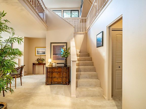 Del Mesa Carmels Finest Freestanding C Model with canyon and forested views that has been extensively remodeled with the greatest attention to detail. This elegant and stunning home has a level and spacious formal entry with a staircase leading to an expanded loft with a new dormer roof, windows and lighted storage areas. Home features, 2 beds, 2 baths, den/office area, updated kitchen with top of the line appliances, formal dining room with built-in cabinetry and bar sink, vaulted ceilings in living room adorned with a leaded glass window, new gas log fireplace and starter. Additional closets were created for additional storage, commercial grade air conditioning system with filter, new water softener, updated electrical, inside laundry, new carpet, tile, blinds, drapery and painted throughout. A wrap around deck with gorgeous views and space for dining. Parking is close to unit. Discover Carmels premier 55+ active adult community with dining, club house, activities and much more.
