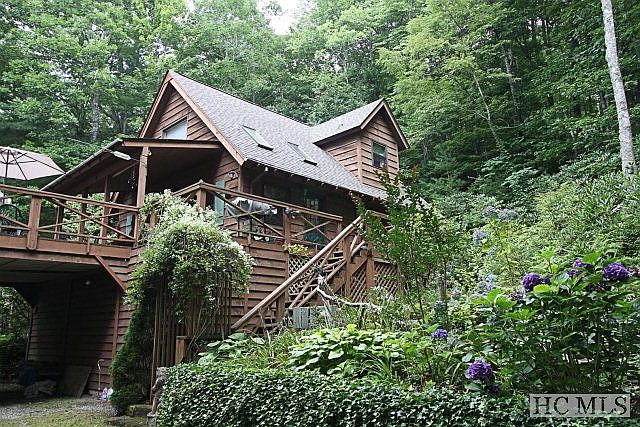 Great mountain get-a-way just minutes from Cashiers. Two bedroom/two bath home, antique pine floors, T & G pine walls and beamed wood ceilings, spacious covered and open deck, kitchen with stainless steel appliances and quartz countertops, new roof, and gas fireplace. There is also a community pond.