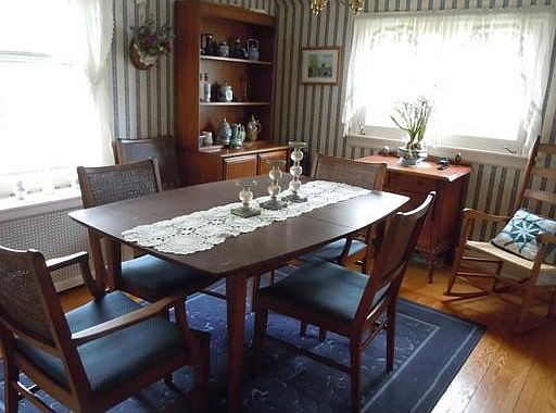 Great vinyl sided Colonial in the heart of East Forest Pk. Enjoy the fireplace (gas) in the front to rear living rm. Updated kitchen features white cabs, appliances & attached cozy breakfast rm. w/blt-in table benches, hutch & hardwood flrs, even in the lav. (Stair chairlift may remain or not). 2nd flr has spacious M bedroom plus 2 more & bath. Washer & dryer remain. Updated SMITH gas heating unit, 2005. Enjoy summer on the rear screened porch o'looking nice private level yard w/att garage. Nearby park for tennis & fun. HOME WARRANTY included.