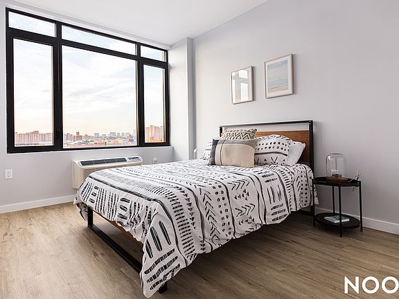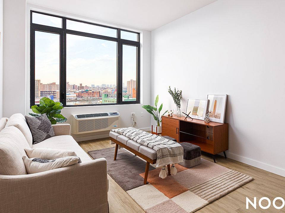 Designer one bedroom at 276 Grand Concourse with skyline views and a chef's island kitchen.