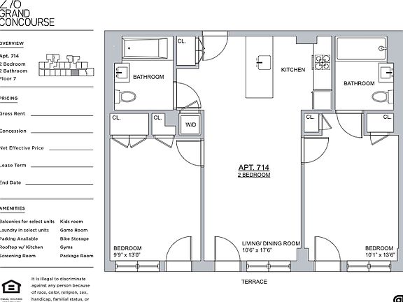 2 Bed / 2 Bath at 276 Grand Concourse - Unit: 714 in Mott Haven, Bronx. Pets Upon Approval. Nearby subway stations include: 149 St - Grand Concourse(2, 5), 138 St - Grand Concourse(4, 5), 3 Av - 138 St (6).Split bedroom layout with Kitchen Island and Private Terrace. Two full bathrooms and LG Washer/Dryer in unit. Apartments feature modern kitchens with Blomberg appliances, high ceilings, smart-controlled Heating and Cooling Systems. Amenities include a Fitness Center and Yoga Room, various Co-Working Spaces and Lounges with high-speed WIFI, a Library and Cafe, Game Room, Movie Screening Room, Children's Playroom, Laundry Room, Bicycle Room, On-Site Parking, and a Skyline Roof Terrace with Grills.We can help you find roommates on Nooklyn.