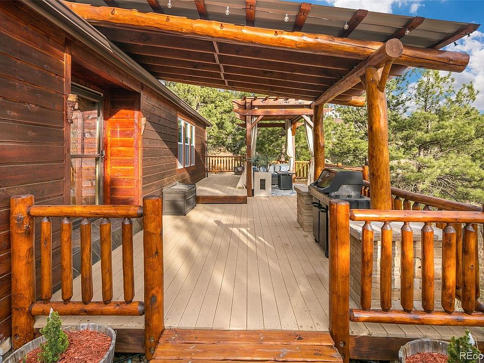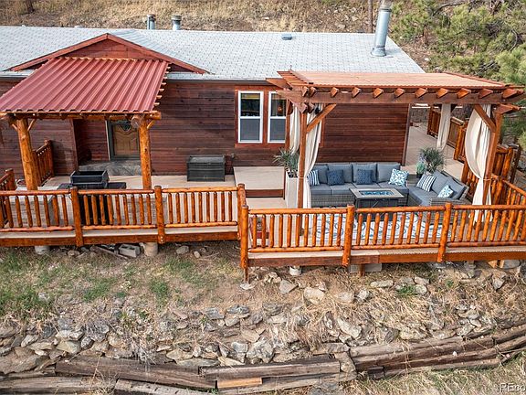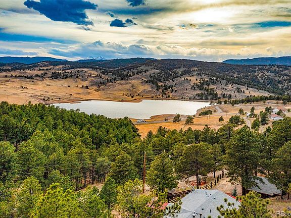 This is it! Your modern mountain home is waiting to welcome you. This charmer is set on 1.5 acres of land overlooking the stunning Pinewood Reservoir with very expansive mountain views that you have to see to believe. As you pull up the drive you are welcomed by the two garage, a quaint water feature, and the trex deck which spans the entire front of the house. Entering the home you are immediately invited into the living room, where you are greeted by great vaulted ceilings spreading throughout the living room which includes a cozy fireplace, dining room, and kitchen. The open-concept kitchen with plenty of counter space, granite counter island, and stainless steel appliances welcomes all for entertaining with friends and family. Relax in the newly updated and modern bathroom with a freestanding tub, hand shower attachment, and lighted vanity. The primary bedroom is your new oasis with a walkout porch including mountain views, a fireplace, and an ensuite bathroom. Enjoy these upgrades, including a new furnace, tankless water heater, and main drainage line. The amazing deck includes lots of space for entertaining, a designated area for your private hot tub, including an electrical set-up to welcome relaxation. You will enjoy all this home has to offer including quiet mountain living, forever mountain views, and plenty of local recreation with Pinewood Reservoir so close by. Starlink Satellite/Router and WeBoost (cell phone booster) are included with the home. Both work excellently and are easy for remote work. This is a private road, please don’t do a drive-by but reach out to the listing agent if you need help scheduling a showing. GREAT NEWS! If you are a Veteran or a family member of a Veteran, this is a VA Assumable Loan @ 4.75%! Ask the agent for more details.