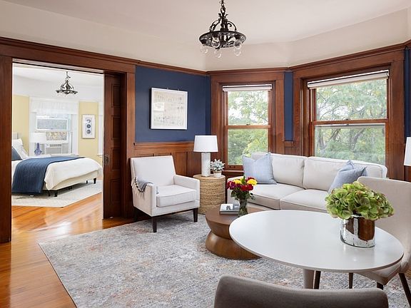 Stunning City Oasis on one of Mid-Cambridge’s quintessential tree-lined streets, with treetop skyline views. Updated and elegant with classic details and sun-filled oversized windows. Landscaped expansive shared yard & garden is the envy of town. Warm yet contemporary architect-designed eat-in kitchen with custom cherry cabinets/soapstone counters and farmer's sink, Bosch gas convection range, a generous pantry, and slate floor. Bay-windowed Living Room with built-in hutch. Large oval Master Bedroom with decorative fireplace and a spacious & airy 2nd bedroom. Serene bath with marble floor and clawfoot tub. Rental parking, in-unit laundry, and large basement storage. Minutes to vibrant Central, Harvard, & Inman Squares, the red line, shops, Whole Foods, and so much more!