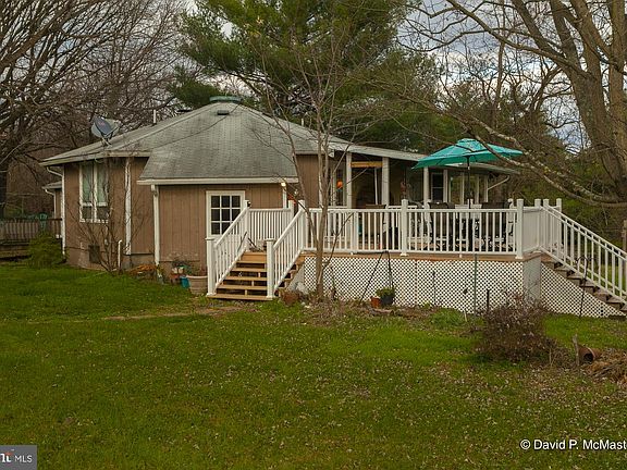 Unique home situated on unique property! Three bedroom, two bath double Hexagon home offering open kitchen/dining/ and living space. Unfinished basement offers storage and utility space. Wrap around porch offers additional living space and laundry hook-up. Deck area to enjoy the mountain views! Detached oversized garage for all of your storage or for the hobbiest. Perfect location and set-up for the gentlemen farmer! Barn w/ tack, room, 4 stalls, and loafing shed and fenced fields and paddock area.