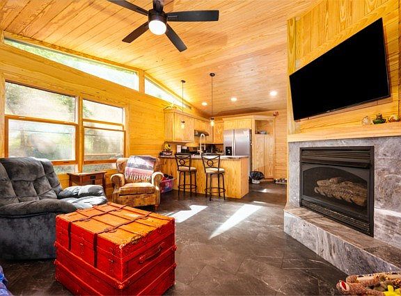 Centrally located to Fontana Lake, Robbinsville, and the Tail of the Dragon, or Bryson City, this fully renovated cabin puts adventure at your doorstep. This beautifully redone home has been almost completely updated from the studs up. A charming rustic retreat! Step inside to find pine-wrapped walls and ceilings that bring warmth and authentic character, paired with waterproof hybrid tile flooring that offers durability and easy maintenance. The kitchen is both stylish and functional with stainless steel appliances and a convenient pantry that adds valuable storage space. A second bedroom has been thoughtfully added, and new insulation ensures year-round comfort. Set in a wooded setting with little lawn to maintain, the property offers privacy without the upkeep. Its location —close to attractions such as Appalachian Trail, NOC and whitewater rafting, Cherohala Skyway, and Fontana Dam. Outdoor lovers will especially appreciate being near Fontana Lake, with easy access to boat put-ins, parks, and recreational areas. Whether you're searching for a full-time home, weekend getaway, or income-producing property, this move-in ready cabin is designed to fit your lifestyle.