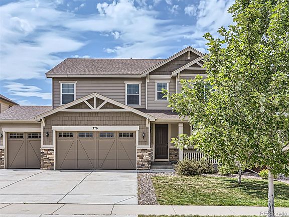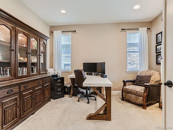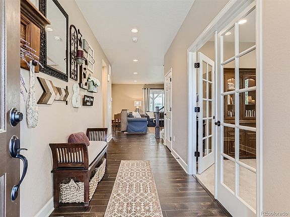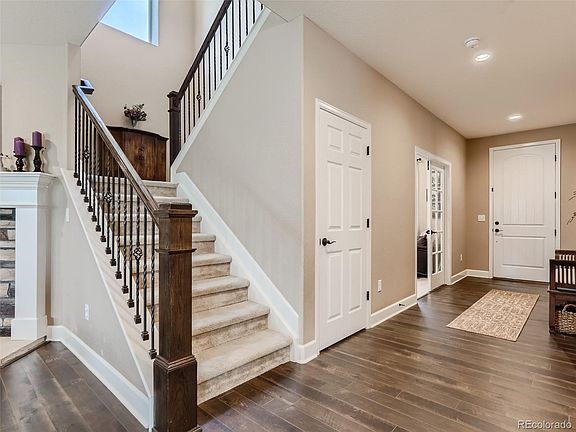 Welcome home! This wonderful home in the sought after neighborhood of Colliers Hill comes with some incredible finishes and wonderful upgrades! This home boasts 5 bedrooms, and has a fully conforming bonus room (6th bedroom) in the basement and 4 bathrooms! Four bedrooms are upstairs with a full bathroom to accommodate any need. The primary bed and bath are also upstairs featuring amazing mountain views from the bedroom, bathtub, and the convenient walk out deck! Enjoy your morning coffee or some reading with spectacular views of the front range right off of your bedroom! Heading downstairs there is no shortage of views either! Soak in the natural light from the dining room or off your patio with its convenient built-in gas grill and fireplace. The backyard oasis offers built-in flower boxes, a paved pathway to the garage, and a concrete pad perfect for a shed or other future addition. Once back inside you can step down to the finished basement! The basement offers a spacious entertainment/movie space with 7-point surround sound, 1 bedroom with an egress window and closet, and another room (currently setup for barn doors, but not installed) which can be adapted to suit any need. From an office, music room, game room, and yes even another bedroom! It has a closet and egress window as well. The basement also has a bathroom with a vast shower! Enjoy all this home has to offer plus the wonderful amenities of the neighborhood, such as a clubhouse, outdoor pool, tons of walking trails, and parks!
