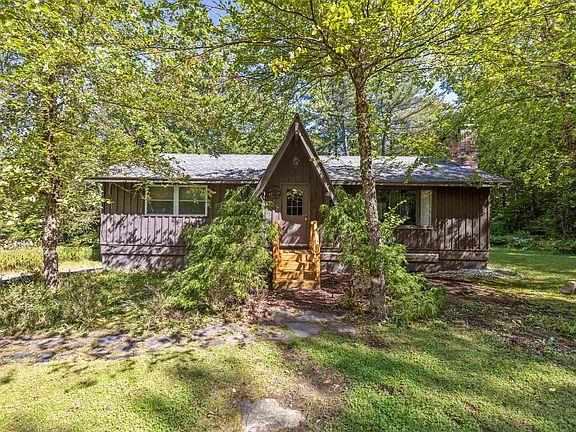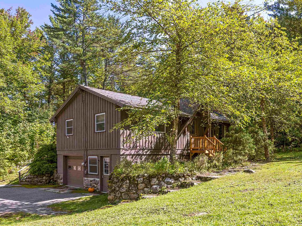 Are you a HIKER, a Mountain BIKER, a DOWNHILL SKIER, A KAYAKER??? Then this 2BR single-level home, tucked in on a partially wooded 1 acre lot, is the place for you! Built in 1985, this property has a ''ski lodge'' feeling. The focal point of this cozy home is a huge fieldstone fireplace in the open concept LR-DR-KIT & pegged hardwood floors throughout. For meals, use the convenient breakfast bar in the KIT or the expandable table in the DR. There are 2 BR & full BA on 1st floor, & an open deck off the kitchen. Downstairs is a washer-dryer set-up & lots of storage, a 1-car direct-entry garage & a custom-built sauna